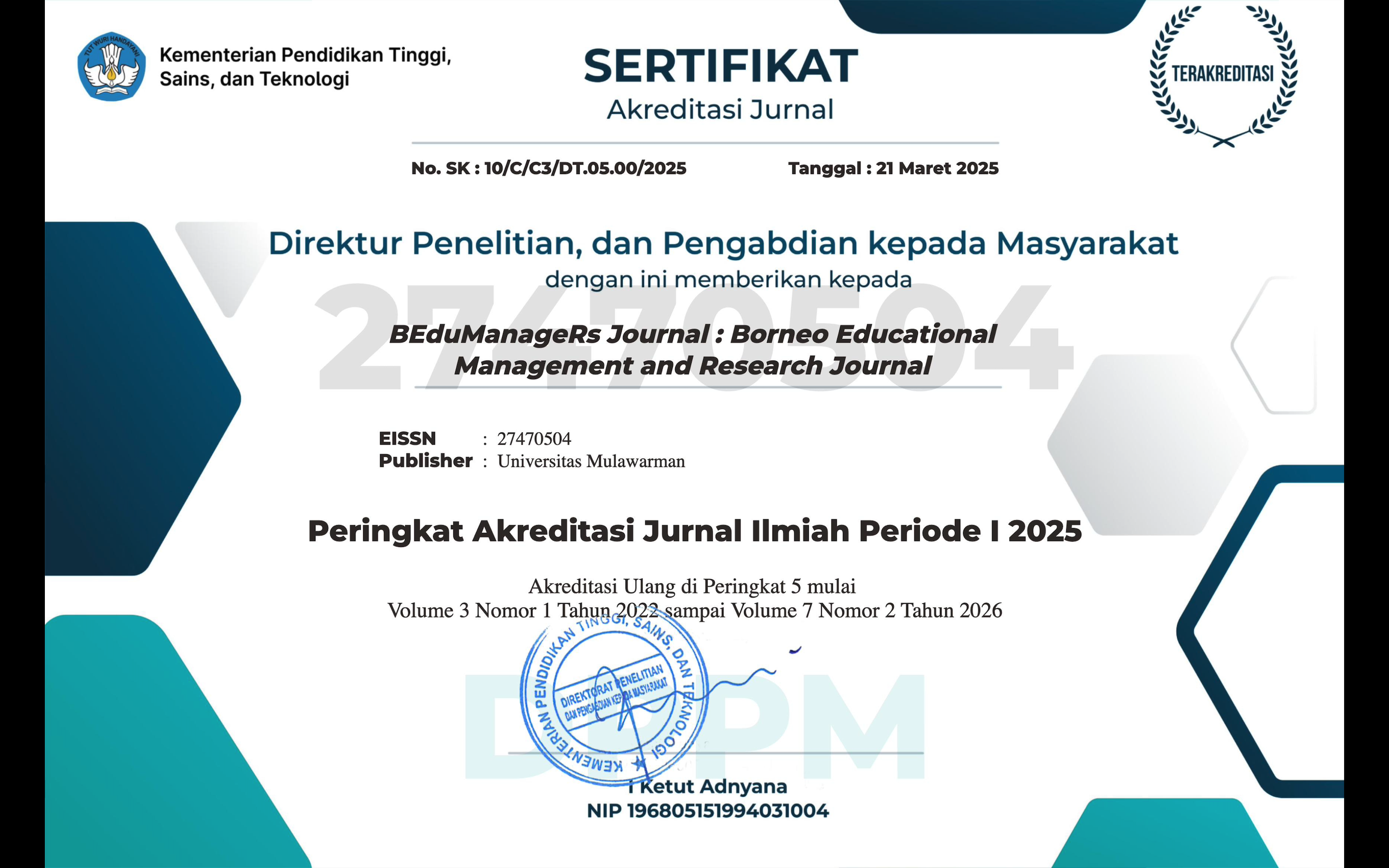 Vol. 6 No. 2 (2025): BEduManagers Journal : Borneo Educational Management and Research Journal (in progress)